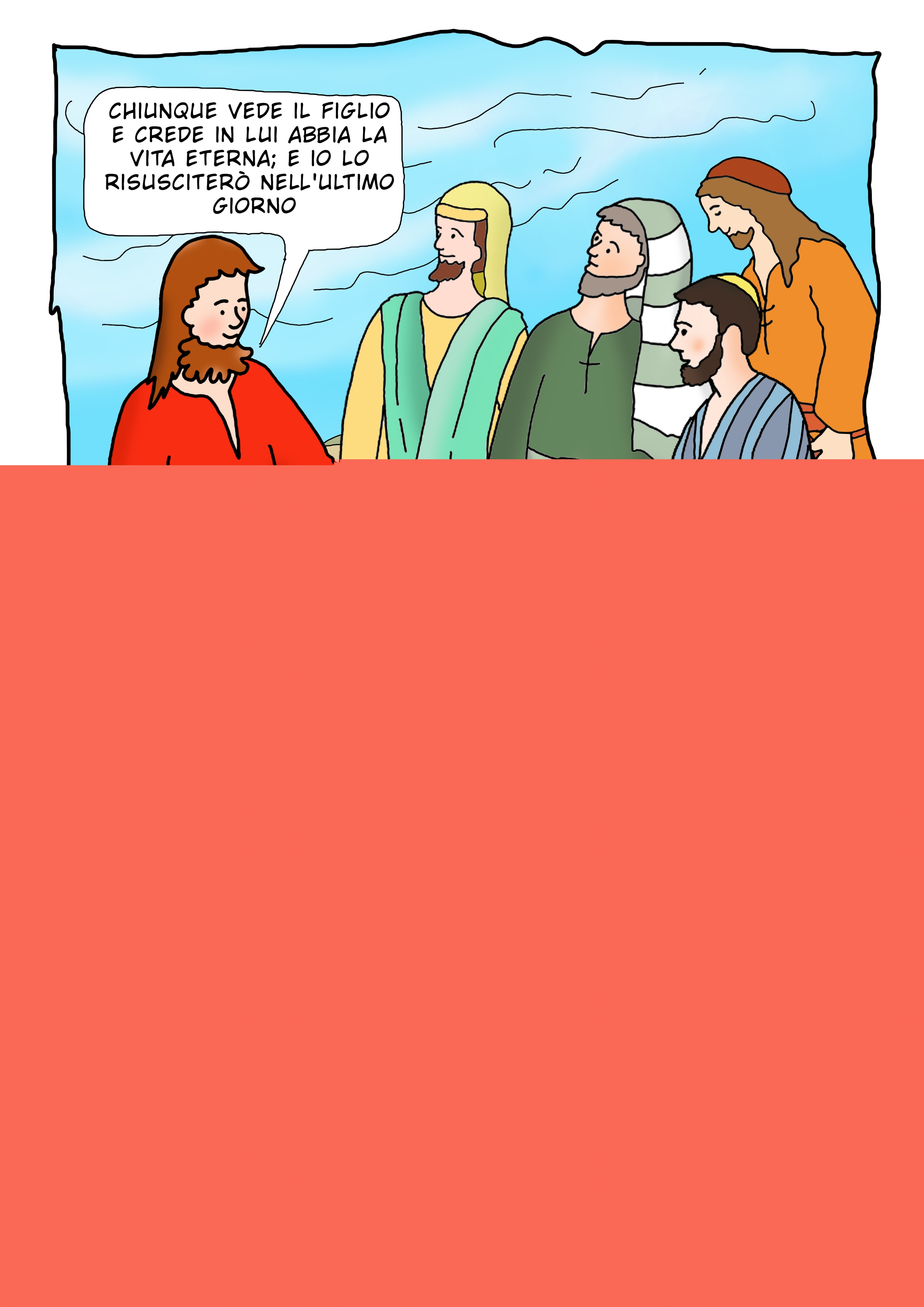 «37Tutto ciò che il Padre mi dà, verrà a me: colui che viene a me, io non lo caccerò fuori, 38perché sono disceso dal cielo non per fare la mia volontà, ma la volontà di colui che mi ha mandato. 39E questa è la volontà di colui che mi ha mandato: che io non perda nulla di quanto egli mi ha dato, ma che lo risusciti nell’ultimo giorno. 40Questa infatti è la volontà del Padre mio: che chiunque vede il Figlio e crede in lui abbia la vita eterna; e io lo risusciterò nell’ultimo giorno».