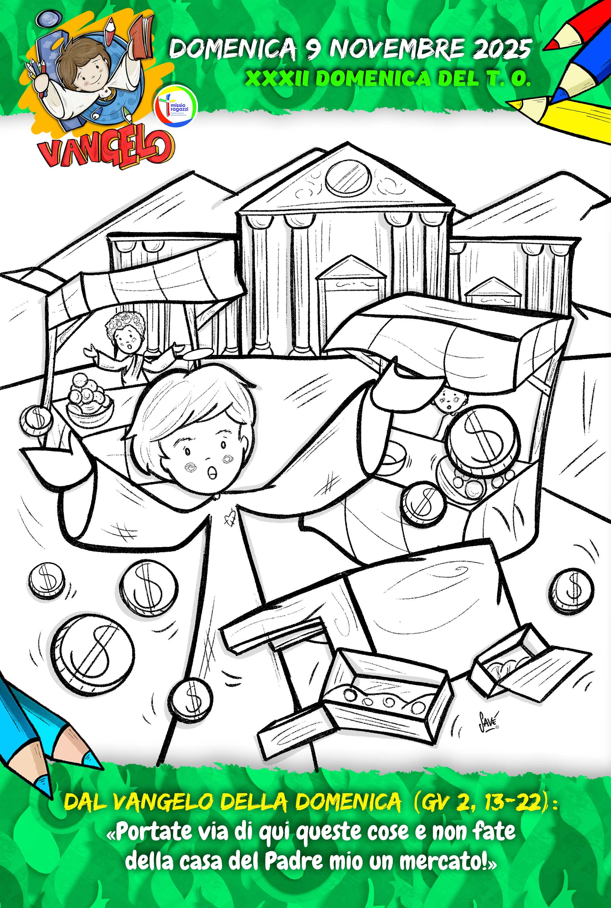 13Si avvicinava intanto la Pasqua dei Giudei e Gesù salì a Gerusalemme. 14Trovò nel tempio gente che vendeva buoi, pecore e colombe e, là seduti, i cambiamonete. 15Allora fece una frusta di cordicelle e scacciò tutti fuori dal tempio, con le pecore e i buoi; gettò a terra il denaro dei cambiamonete e ne rovesciò i banchi, 16e ai venditori di colombe disse: «Portate via di qui queste cose e non fate della casa del Padre mio un mercato!». 17I suoi discepoli si ricordarono che sta scritto: Lo zelo per la tua casa mi divorerà.