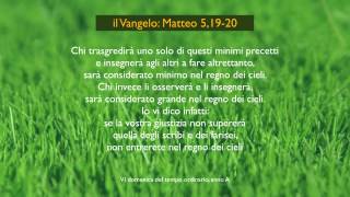 In quel tempo, Gesù disse ai suoi discepoli: «17Non crediate che io sia venuto ad abolire la Legge o i Profeti; non sono venuto ad abolire, ma a dare pieno compimento. 18In verità io vi dico: finché non siano passati il cielo e la terra, non passerà un solo iota o un solo trattino della Legge, senza che tutto sia avvenuto. 19Chi dunque trasgredirà uno solo di questi minimi precetti e insegnerà agli altri a fare altrettanto, sarà considerato minimo nel regno dei cieli. Chi invece li osserverà e li insegnerà, sarà considerato grande nel regno dei cieli.